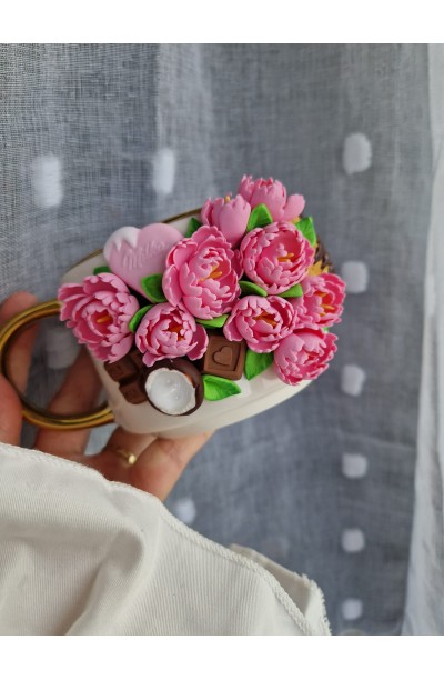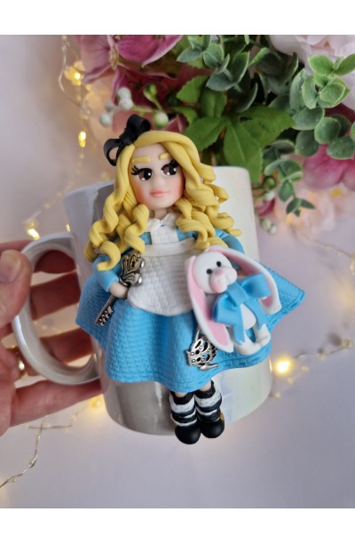 Cana transparenta decorata cu figurina realizata manual din pasta polimerica(fimo).