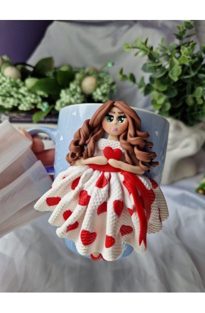 Cana din ceramica decorata cu figurina realizata manual din fimo.