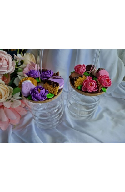 Cana decorata cu figurina realizata manual din pasta polimerica(fimo).