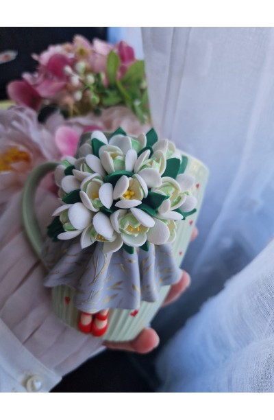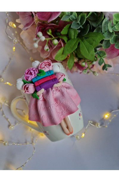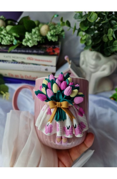 Cana din ceramica decorata cu figurina realizata manual din fimo.