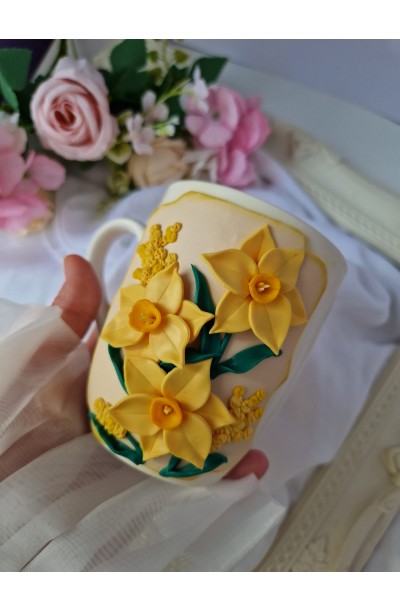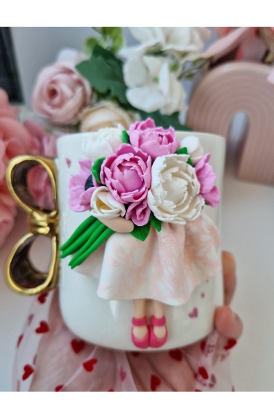 Cana decorata cu figurina realizata manual din pasta polimerica(fimo).