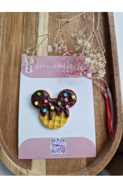 Produs realizat manual din lut polimeric, cu ac de brosa la spate.