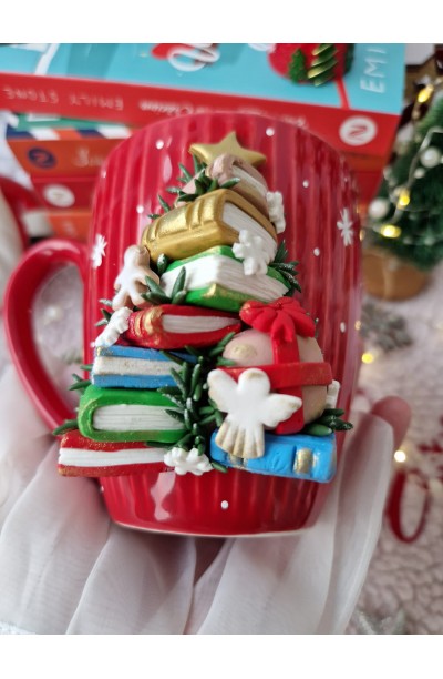 Set compus din vaza si cana din ceramica decorata cu figurina realizata manual din pasta polimerica(fimo)